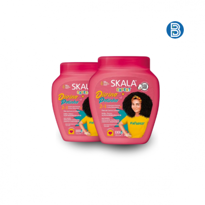 A linha Skala Kids foi desenvolvida para facilitar a rotina de cuidados com cabelos das crianças cacheadas e crespas principalmente na hora do desembaraço. Sabe aquele produto que você vai querer usar mesmo se seu cabelo estiver maravilhoso? É esse, afinal ele é DIVINO! E o melhor de tudo está por vir: pode ser usado como Creme de Tratamento e Creme para Pentear. É só passar e deixar o dia todo. Ele elimina o frizz, hidrata, dá vida aos fios opacos, volume na medida certa e modela os cachos de maneira suave sem deixar resíduos.